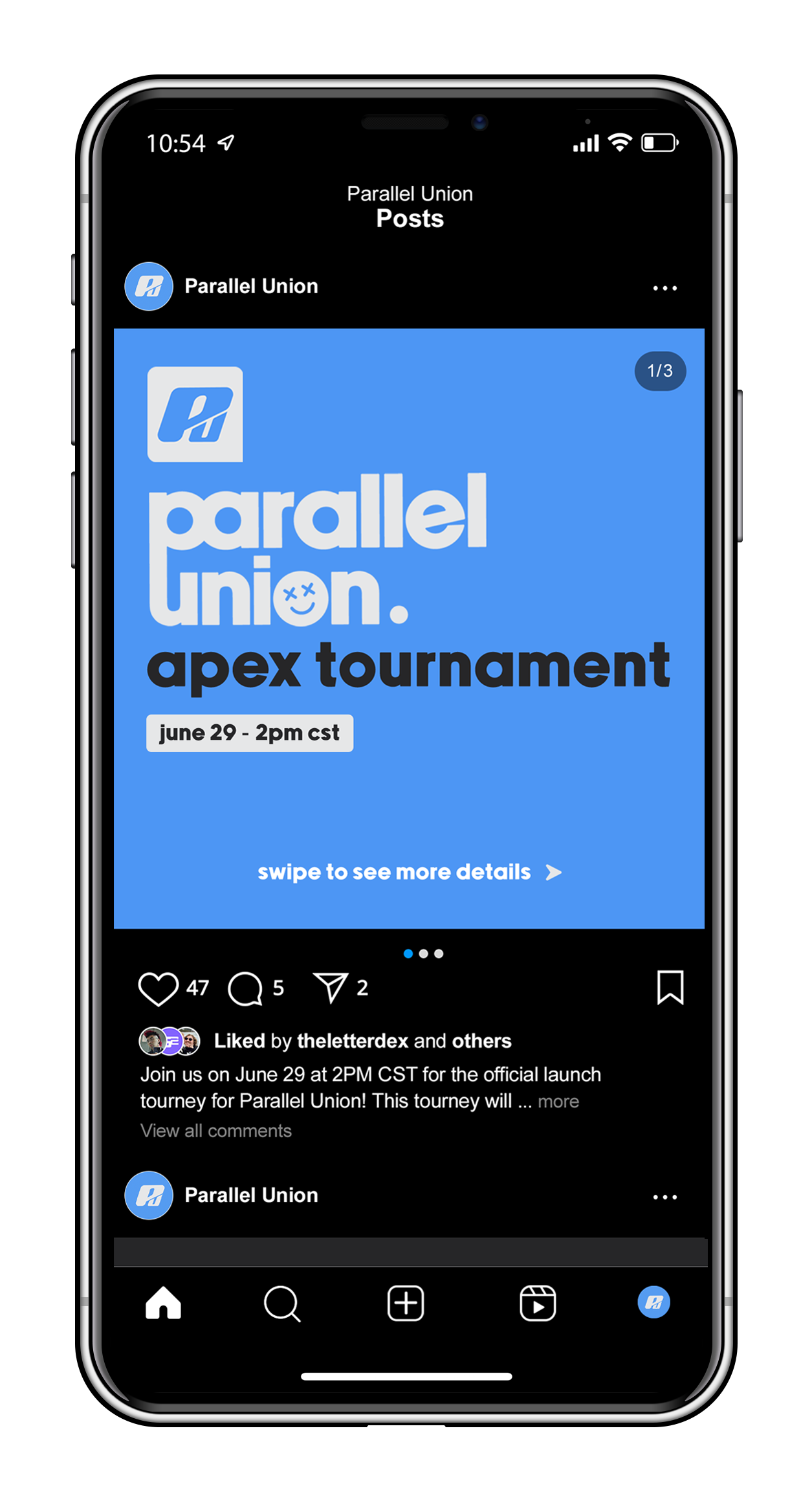 Parallel Union tasked me to create some social posts and templates for their socials, including content spotlight posts and event tournament announcements.